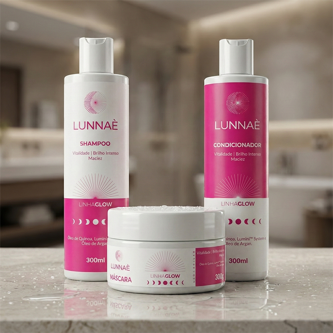 A Linha Glow Lunnaè transforma cabelos opacos em verdadeiros espelhos de luz. Unindo a tecnologia inteligente Lumini System ao poder nutritivo da Quinoa e do Óleo de Argan, ela retexturiza a fibra capilar e blinda a coloração. É o tratamento definitivo para garantir fios com brilho tridimensional, toque de seda e vitalidade radiante.